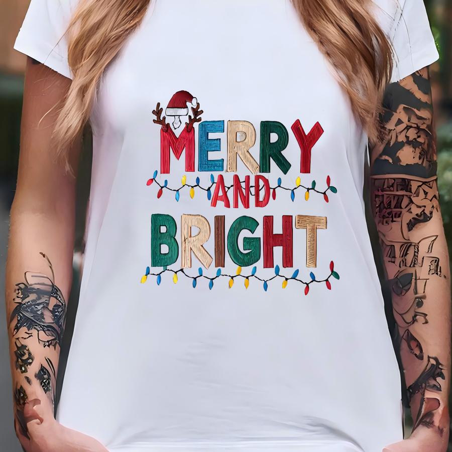 merry And Bright Sweatshirt, Merry Bright Xmas Tree Shirt Pink Holiday Festive Bow Lights, Cute Jolly Tee Merry Christmas Tee T-shirt