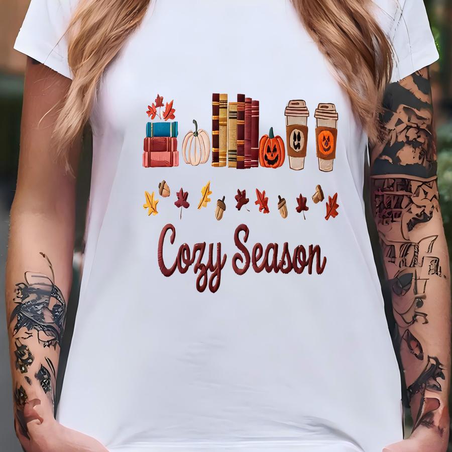 Cozy Season Sweatshirt, Cute Autumn Sweatshirt, Pumpkin Bookish Sweater, Fall Apparel, Spooky Season Sweater T-shirt