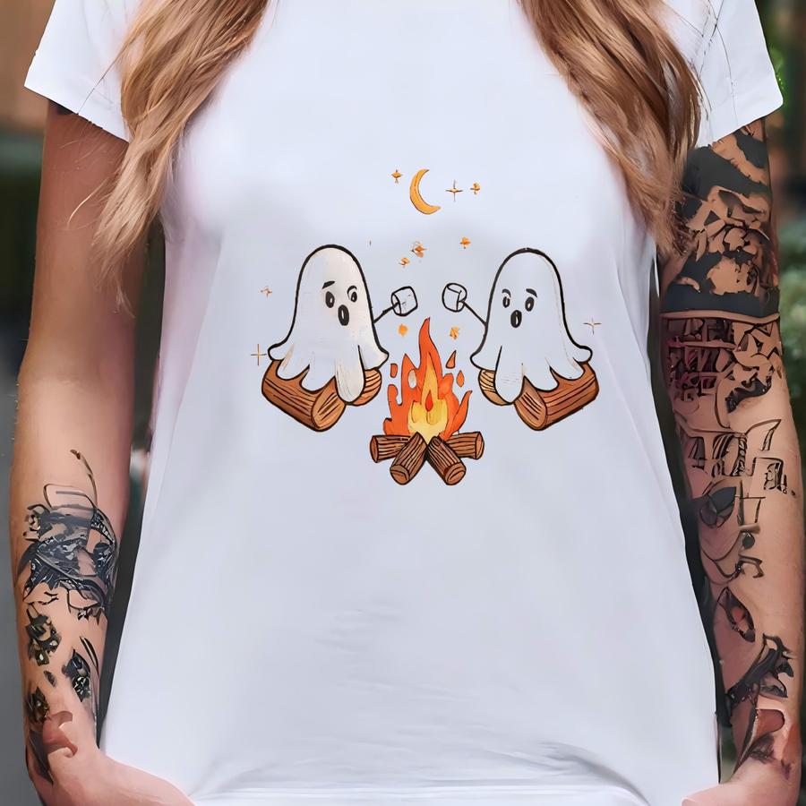 Cute Ghosts Camping Sweatshirt, Spooky Season Outdoors Gifts, Halloween Vintage Y Tshirt T-shirt