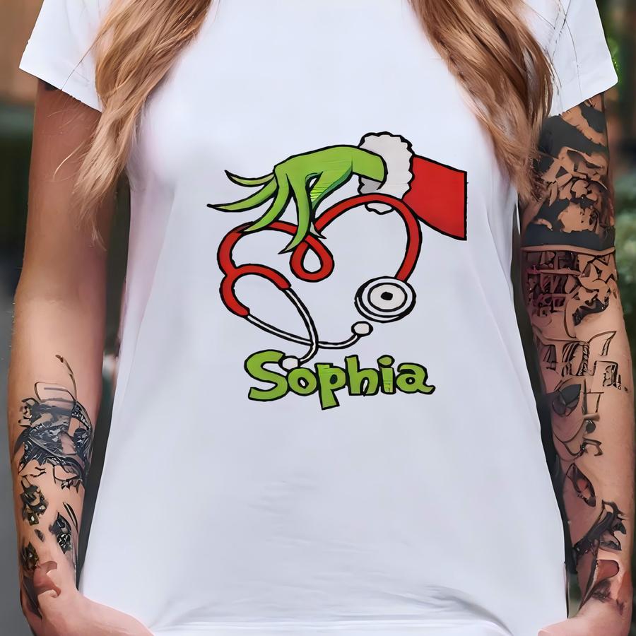 Custom Nurse Side Bow Cut-out Sweatshirt, Christmas Nurse Embellished Sweatshirt, Funny Hand Sweatshirt, Xmas Gift T-shirt