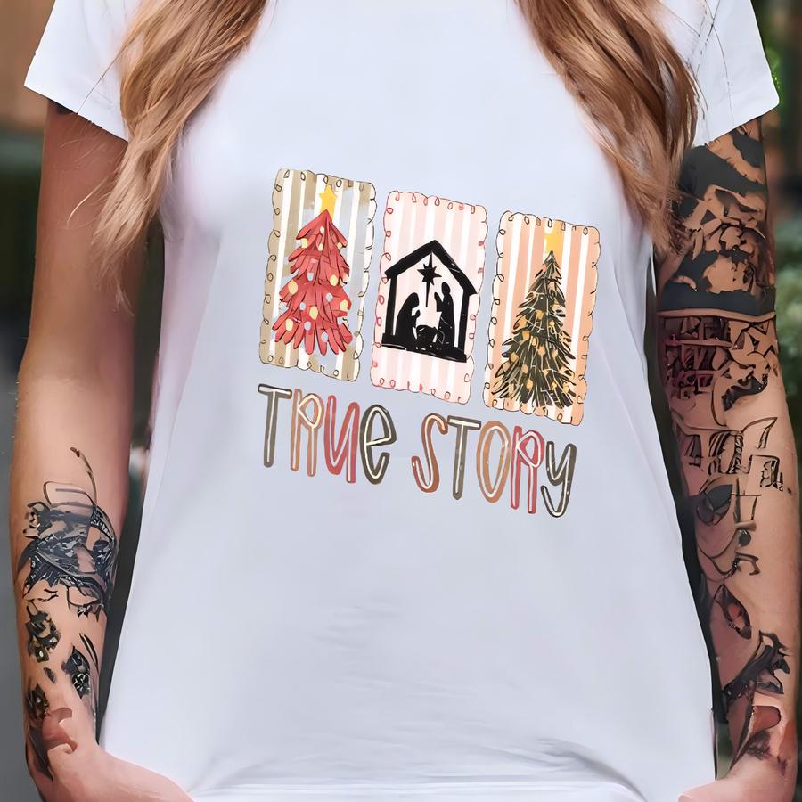 True Story Nativity Christmas Shirt-sweatshirt - Christian Holiday Apparel - Boho Jesus Birth Tee - Manger Scene Faith Gift T-shirt