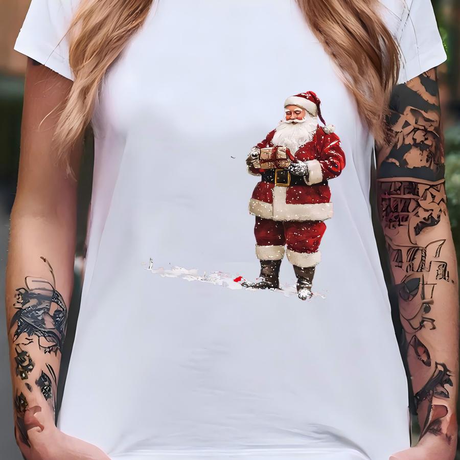 Santa And Reindeer Shirt - Classic Christmas Gift Sweatshirt - Winter Scene Hoodie - Traditional Santa Graphic Tee - Holiday Deer Print T-shirt
