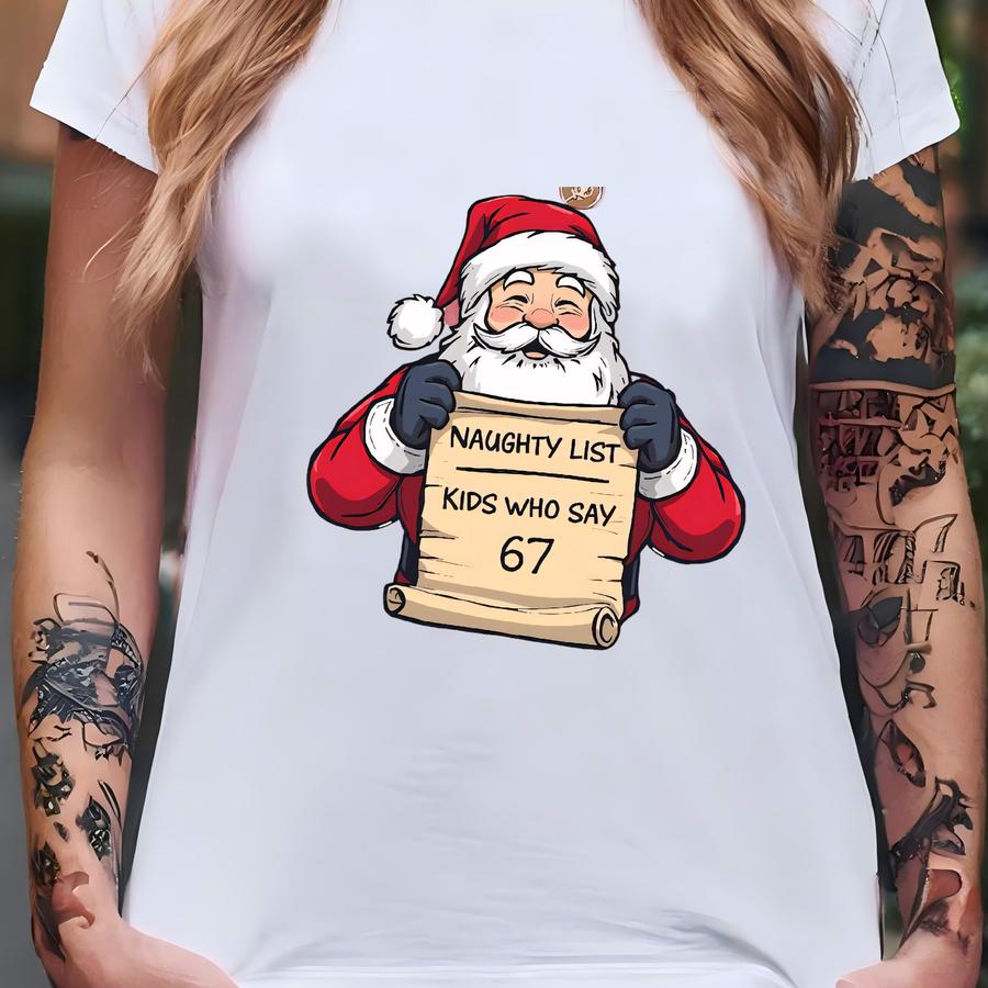 ® Funny Naughty List Christmas Shirt | Sarcastic Xmas Sweatshirt Gift | Kids Who Say 67 Santa Claus Joke Tee T-shirt