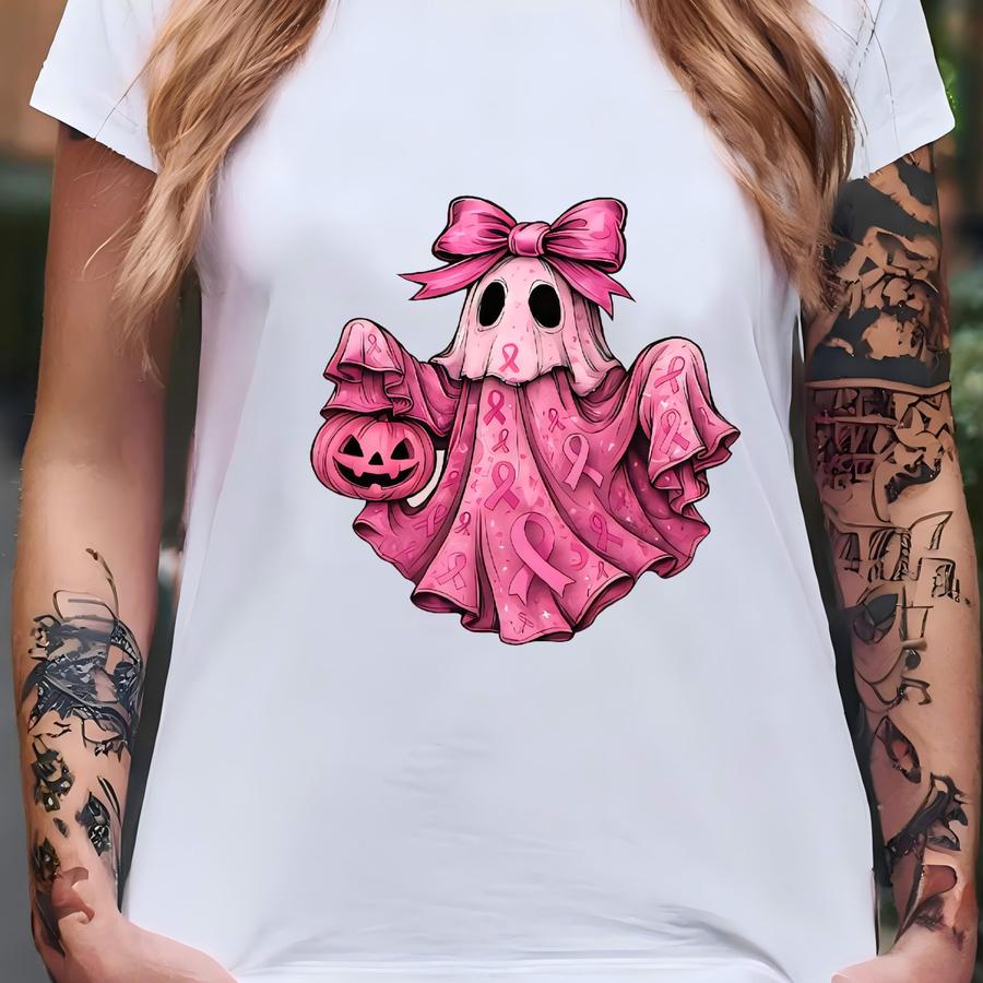 Breast Cancer Sweatshirt | Halloween Awareness Ribbon | Spooky Cute Ghost | October Crewneck | Breast Cancer Warrior Gift T-shirt