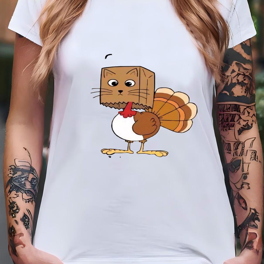 Custom Thanksgiving Text Turkey Shirt, Funny Thanksgiving Turkey Sweater, Meow Meow Turkey Hoodie, Gobble Custom Text Crewneck T-shirt