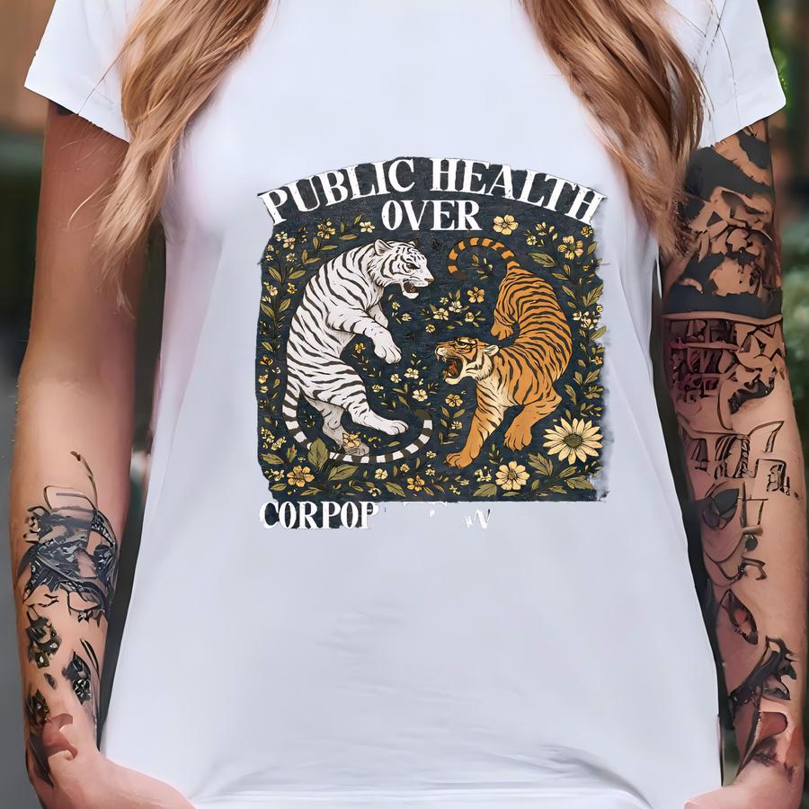 Tiger Boho Public Health Over Corporate Wealth Shirt, Social Justice Anti Oligarchy Activism Anti Fascism Resistance Sweatshirt T-shirt