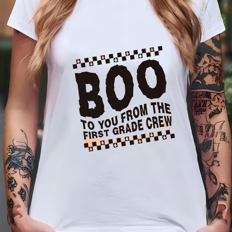 Boo To You From The First Grade Crew - Matching Halloween Team Shirt For First Grade Teachers, Cute Retro Halloween 1st Grade Teacher Shirt T-shirt