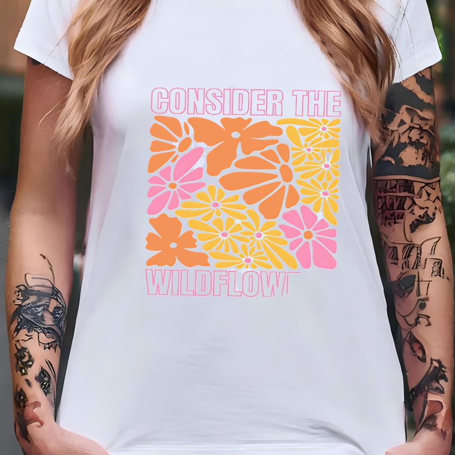 Consider The Wildflowers Boho Hoodie With Luke 12:27 Bible Verse - Retro Christian Graphic Tee, Christian Gift, Religious Concert Tee T-shirt
