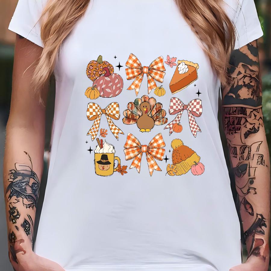 Retro Thanksgiving Hoodie: Pumpkin Bow Fall Tee T-shirt