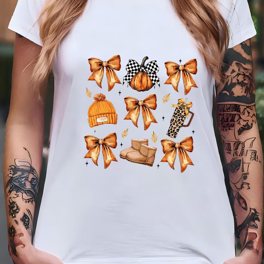 Retro Fall Pumpkin Bow Shirt: Coquette Autumn Tee T-shirt
