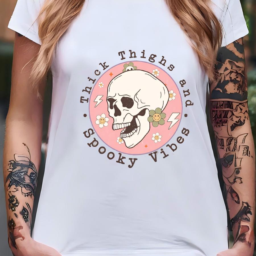 Thick Thighs Spooky Vibes Sweatshirt - Funny Halloween Skull Sweat T-shirt