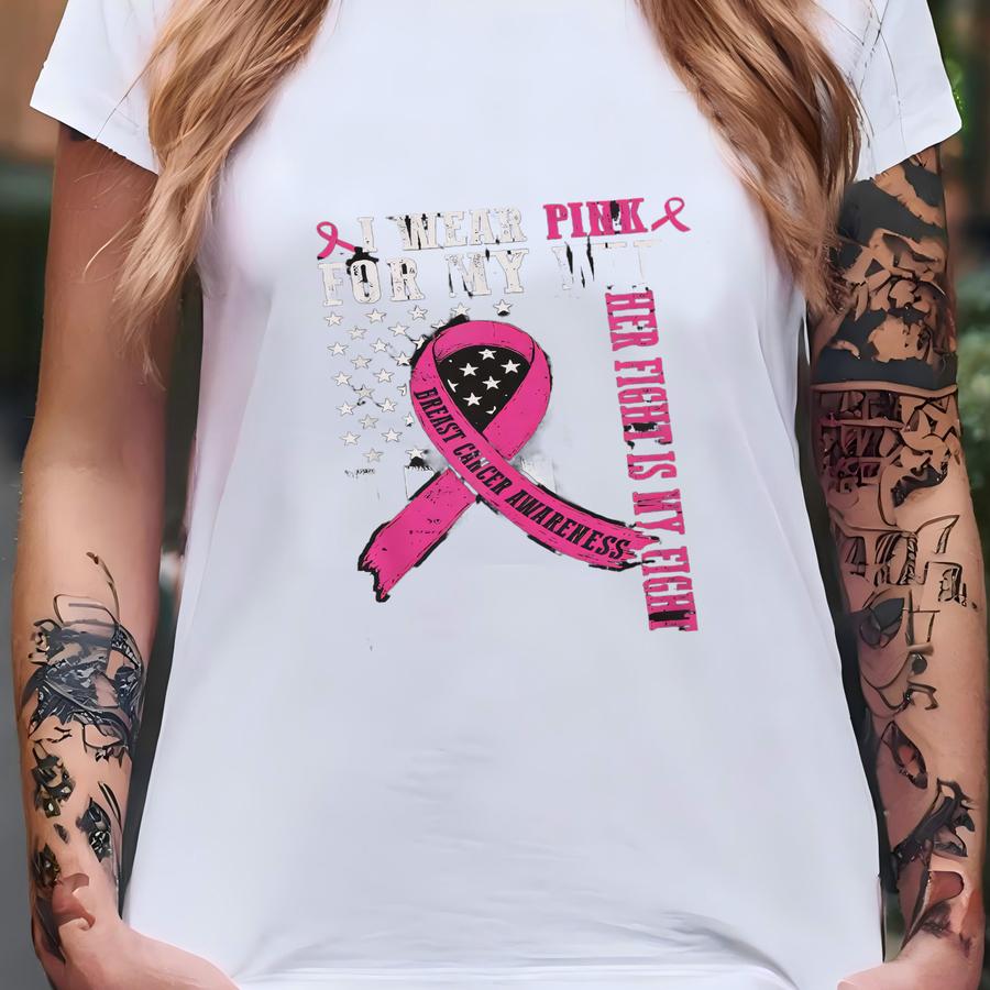 Custom I Wear Pink For My Mom Shirt, Breast Cancer Awareness Shirt, Her Fight Is My Fight, Personalized Awareness Gift Tee, Fighters Gifts T-shirt