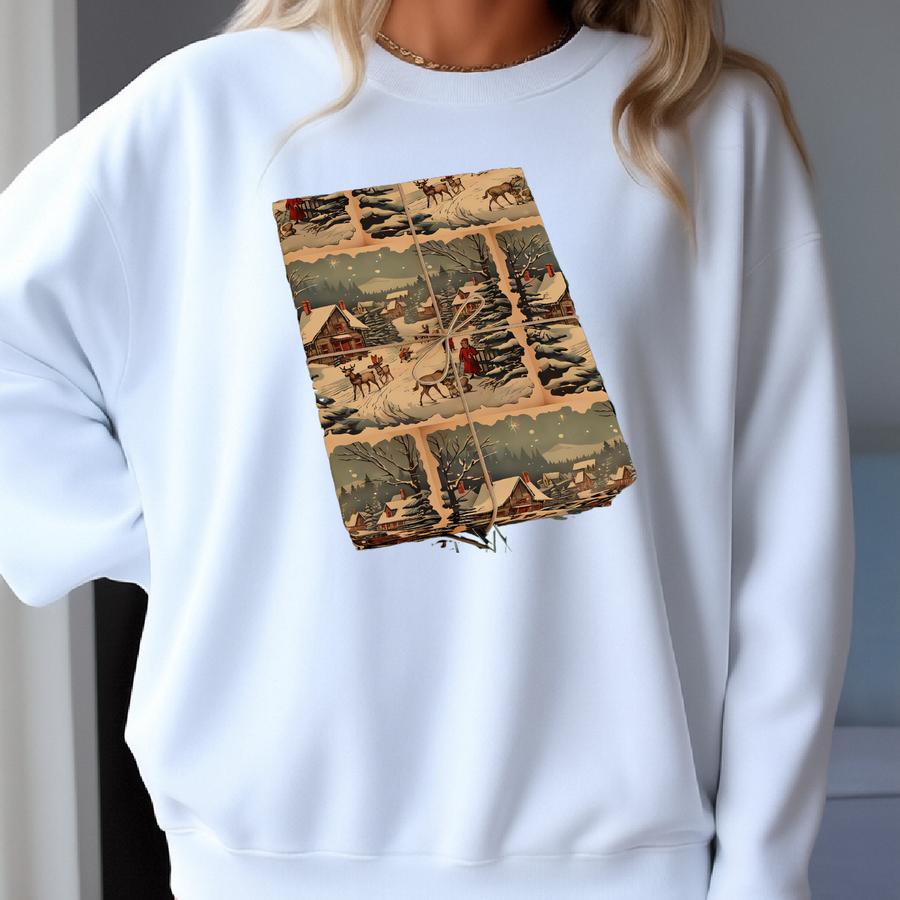 Vintage Christas Winter Scene Wrapping Paper, Christmas Wrapping Paper, Gift Wrap Sweatshirt