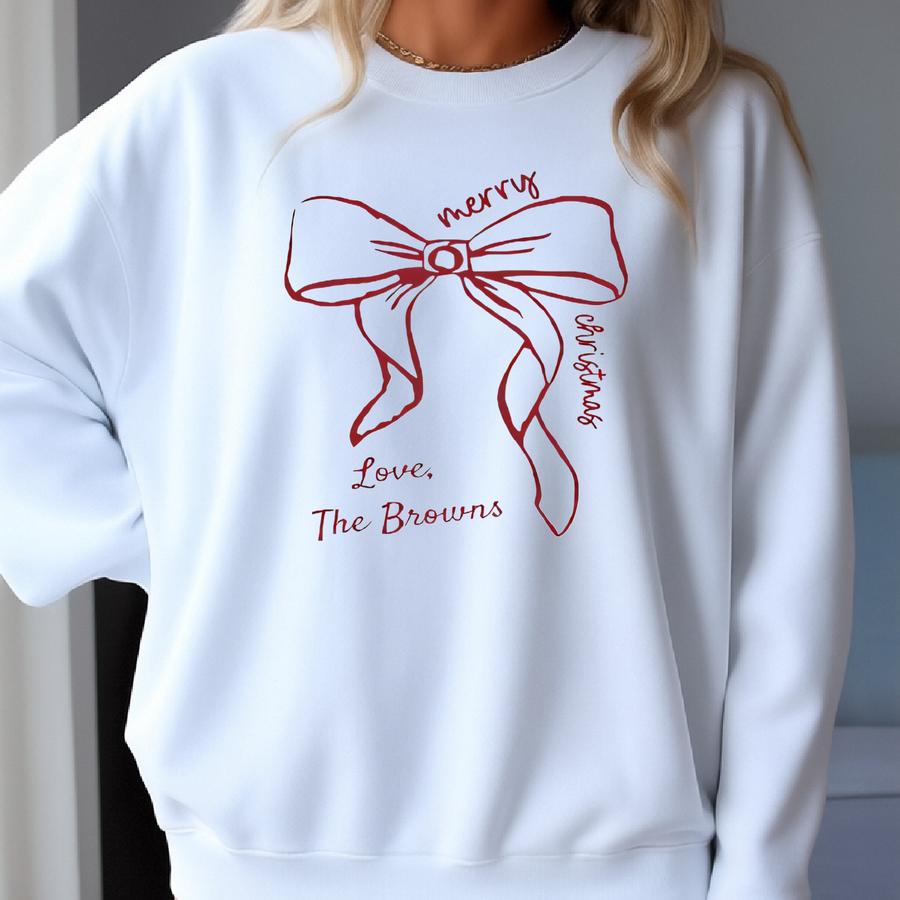 Custom Family Christmas Bow Minimal Tshirt Matching Holiday Shirts Sweatshirt