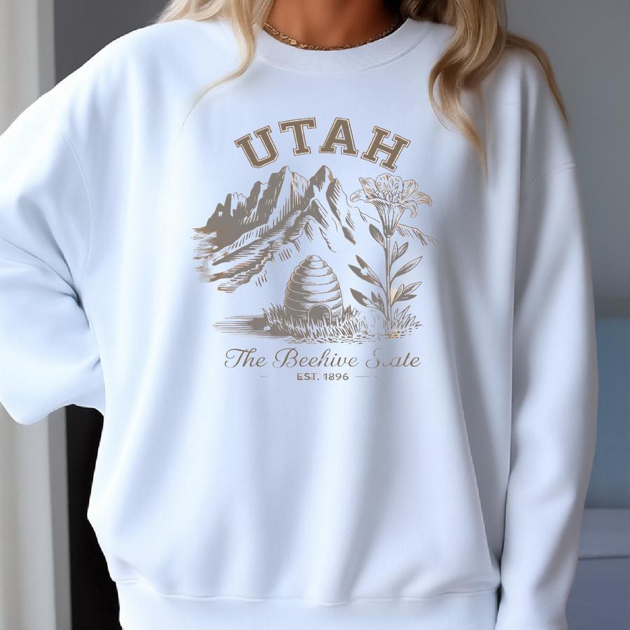 Retro State Utah Beehive Beekeeper Mountain Minimal Sweatshirt Graphic Neutral Unisex Christmas Gift Winter Apparel Tourist Travel Sweatshirt