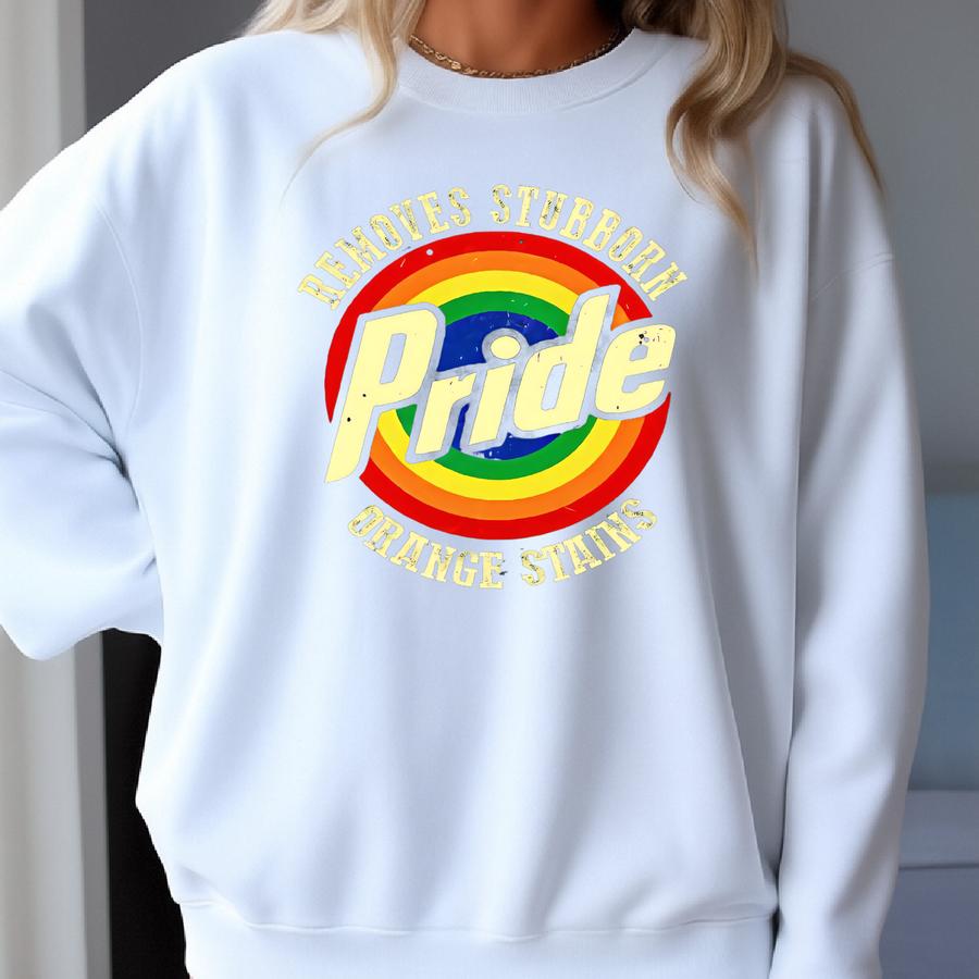 Pride Removes Stubborn Orange Stains Shirt, Funny Anti Lgbtq Tee, , Progressive Political T-shirt, Pride Shirt, Fdt Sweatshirt
