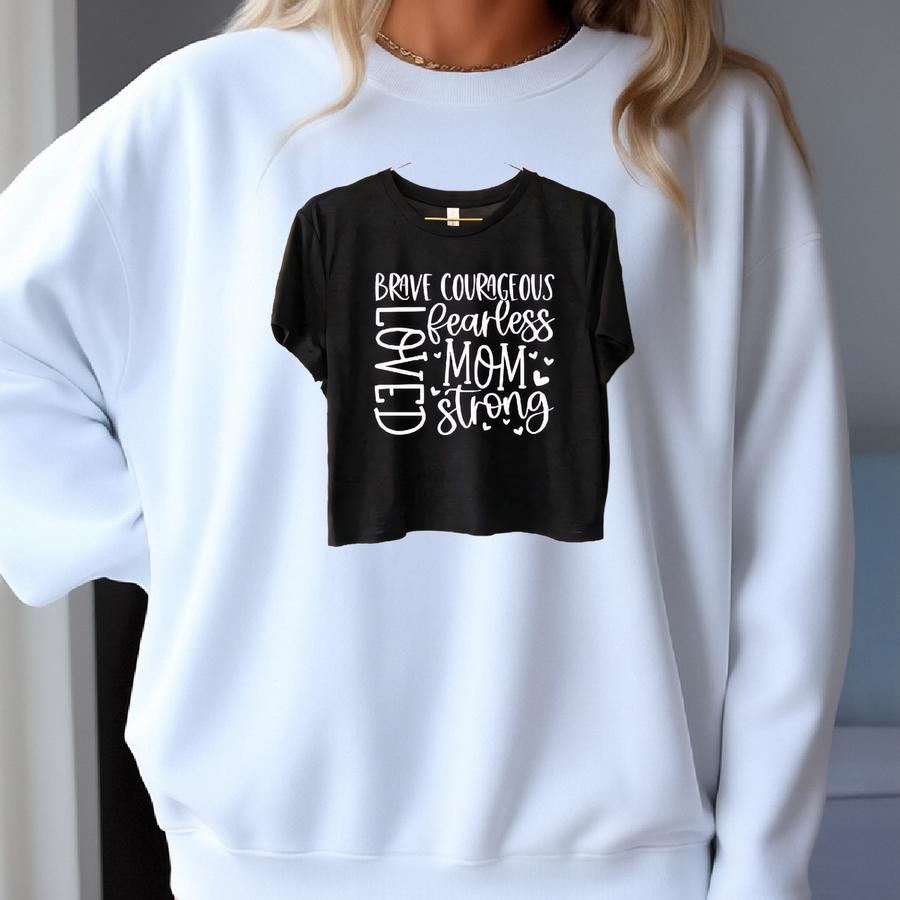 Brave Strong Mom Crop Top, Mom Birthday Crop Top, Happy Mother's Day Gift, Family Matching Crop Top, Boy Mom Crop Top, Fearless Mother Crop Sweatshirt