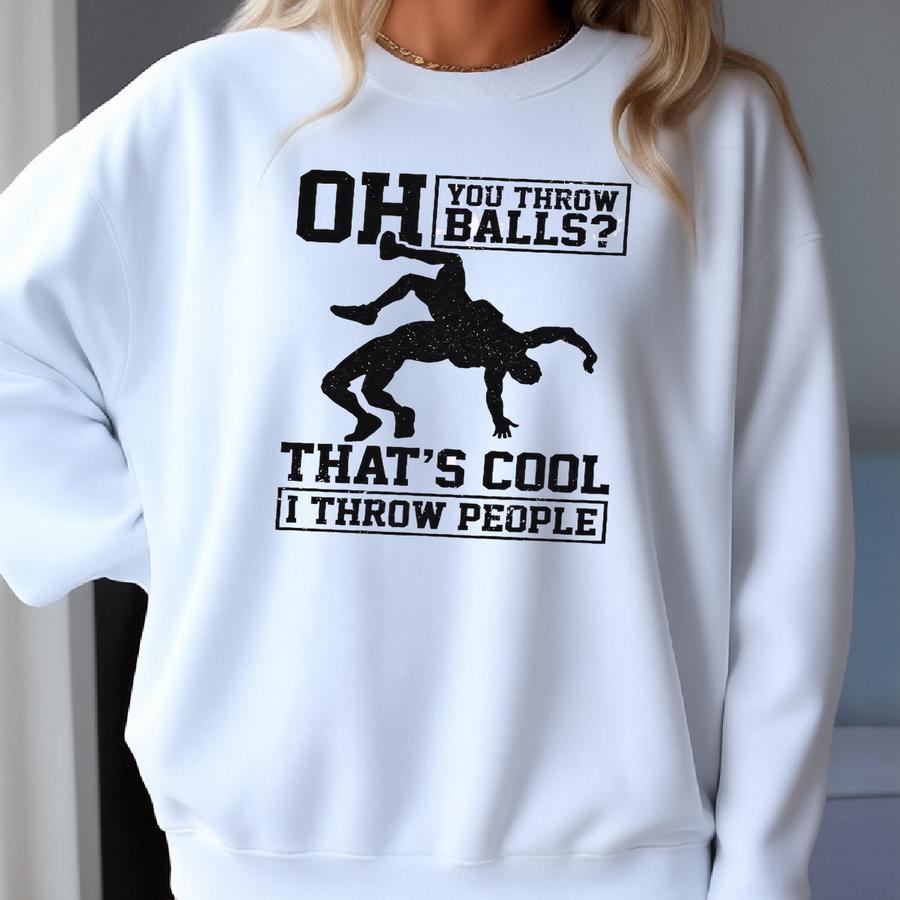 Wrestling Shirt Wrestler Tshirt You Throw Balls I Throw People Funny Wrestle Vintage Wrestler Gift Grappling Wrestling Mom T-shirt Sweatshirt