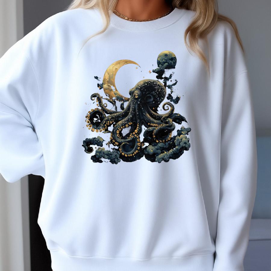 Octopus Shirt Crescent Moon Dark Maximalist Moody Octopus Kraken T-shirt Whimsical Celestial Ocean Animal Lover Octopus Gifts Tshirt Sweatshirt