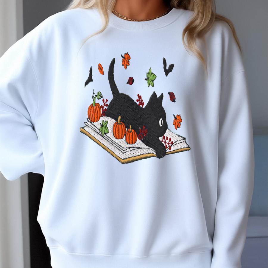 Black Cat Sweatshirt: Cozy Autumn Crewneck Sweatshirt