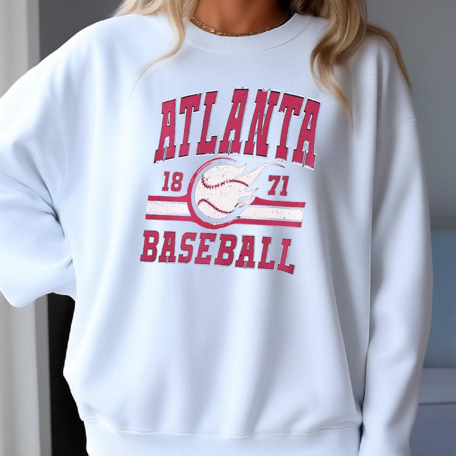 Retro Atlanta Baseball Hoodie, Atlanta Game Day Sweatshirt, Atlanta Baseball Fan Gift, Atlanta Vintage 80s Style, Navy And Red Hoodie Sweatshirt