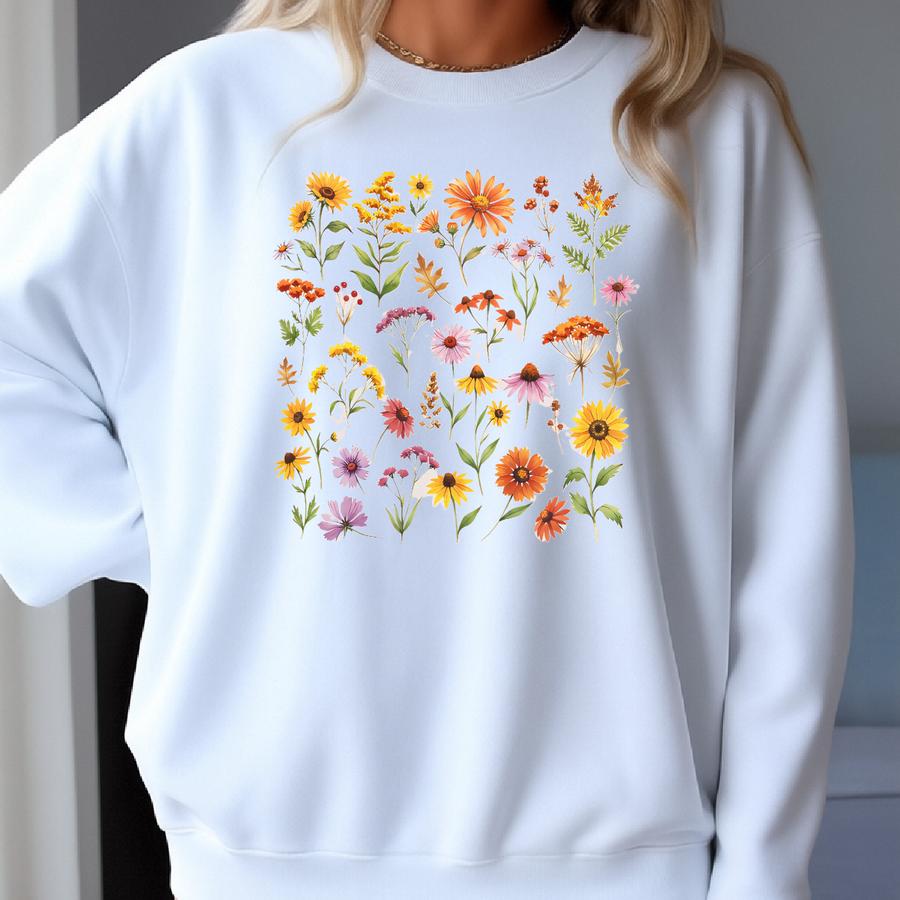 Boho Fall Wildflower T-shirt, Retro Fall Floral Shirt, Vintage Autumn Wildflower Tee, Fall Pumpkin Shirt, Fall Tshirt Sweatshirt