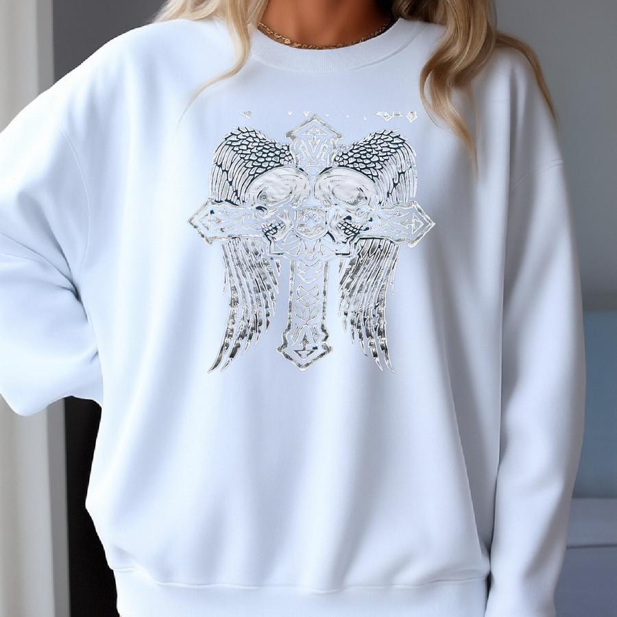 Vintage Y2k Affliction Aop T-shirt Mens 2xl Blue Graphic Cross Winged Skull Tee Sweatshirt