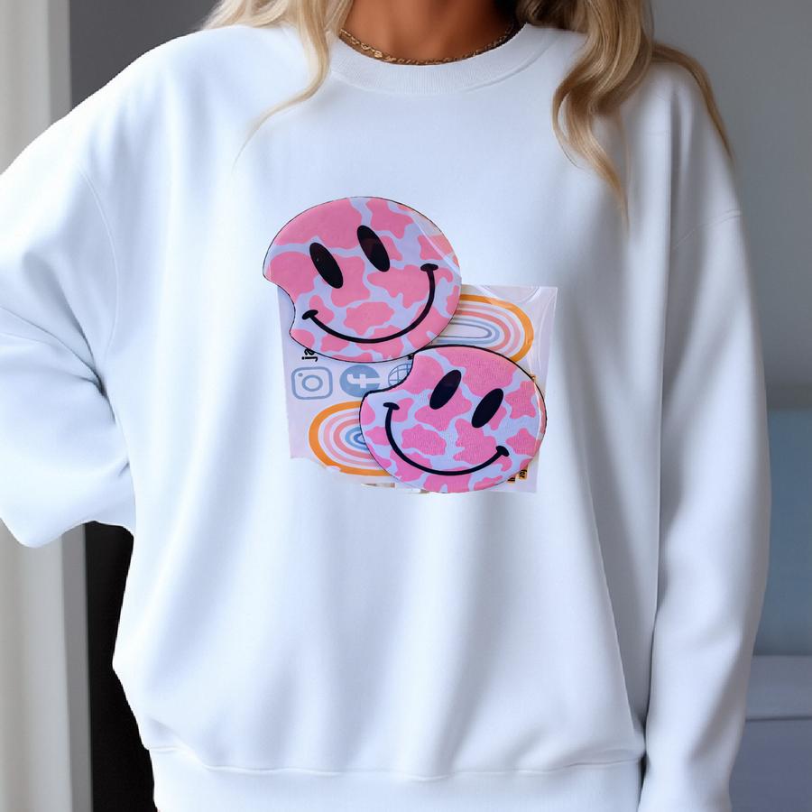 Pink Cow Print Smile Face Car Ers, Lightning Bolt Eyes Car Ers, Sweet 16 Gift, Car Gift, Birthday Gift For Women, Cup Holder Sweatshirt