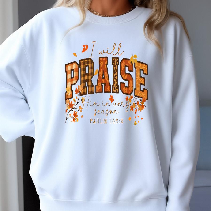 I Will Praise Him In Every Season Shirt, Funny Halloween T-shirts, Cozy Autumn Outfits, Awesome Fall Design, Cozy Halloween Shirts Sweatshirt