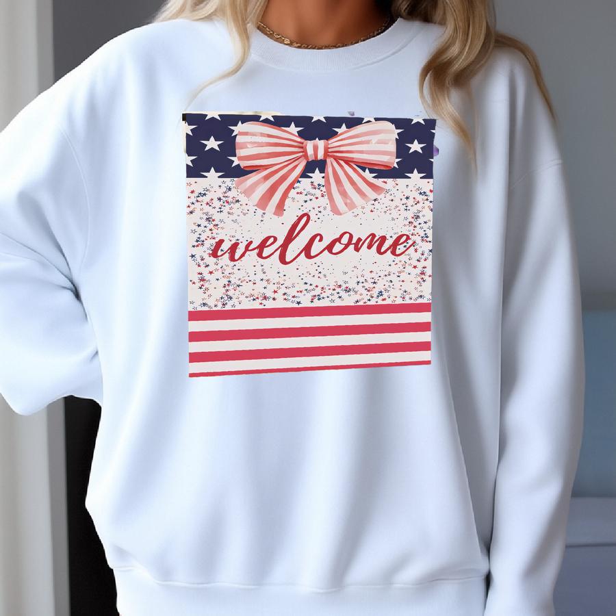 Coquette Welcome Flag Summer Yard Decor Garden Flag July 4th Decor Personalized Sign Red White And Blue House Banner Patriotic Rv Gift Sweatshirt