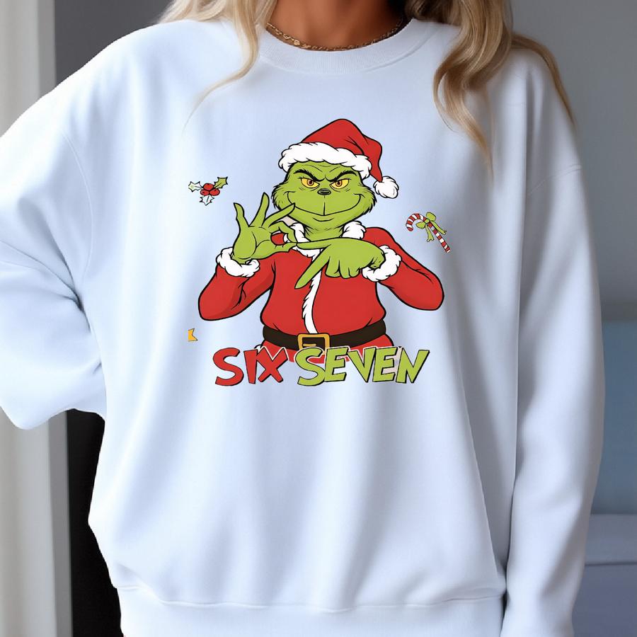 Six Seven Meme Christmas Green Mean Guy Sweatshirt, Viral Funny Saying 6 7 Shirt, Internet Joke Shirt. Six Seven Shirt Sweatshirt