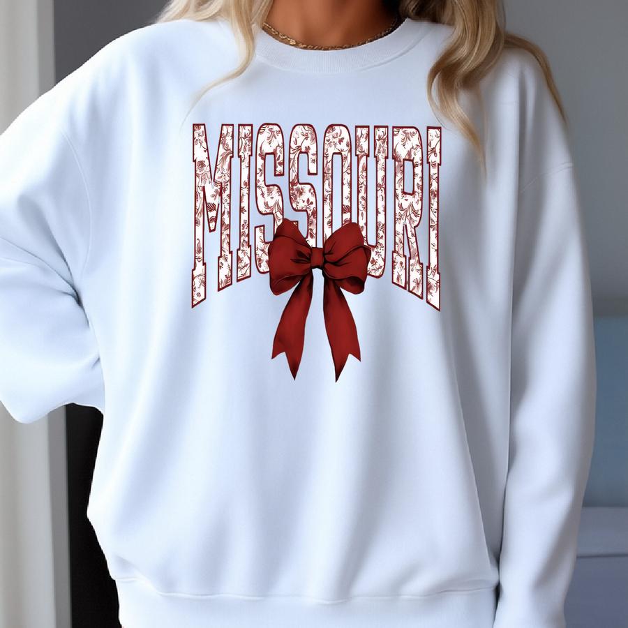 Missouri Floral Bow Comfort Color Tank/tee Or Sweatshirt Cute State Pride Tee | Game Day Shirt | Southern Graphic Tee | Gift For Her Sweatshirt