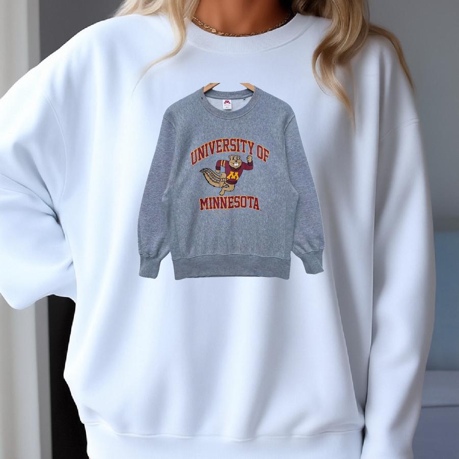 University Of Minnesota Sweatshirt Sweater Pullover Jumper Long Sve 90s Streetwear Usa College Medium Size Gray Colour Sweatshirt