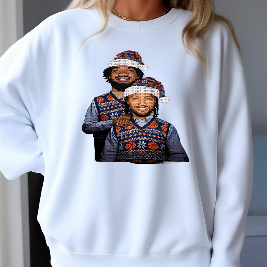 Step Brothers Jalen Brunson Karl-anthony Towns Christmas T-shirt Funny Holiday Basketball Ugly Sweater Style Graphic Tee For Fans Sweatshirt