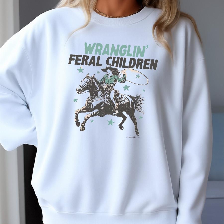 Wranglin Children Sweatshirt Cute Western Cowgirl Mama Sweater Funny Retro Rodeo Cowboy Crewneck Country Music Concert Gift For Her Sweatshirt