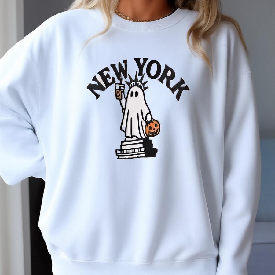 Halloween Sweatshirt: Ghost Statue Of Liberty, Nyc Coffee Pumpkin Sweatshirt