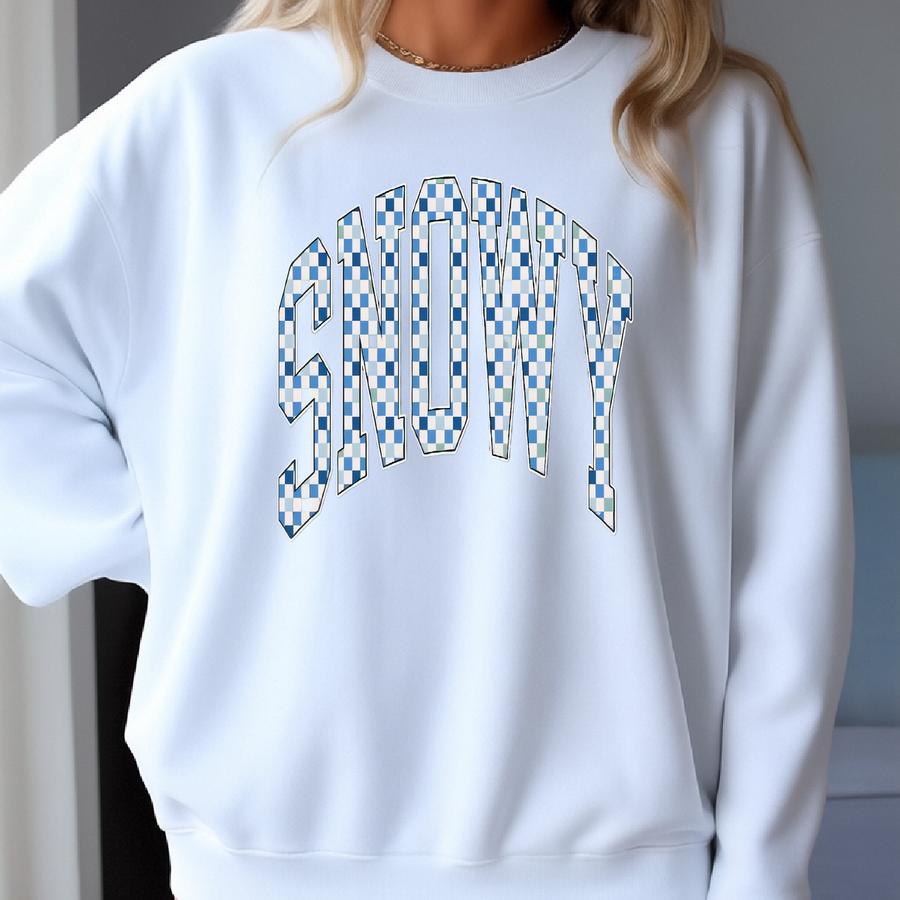 Checkered Retro Snowy Sweatshirt, Merry Christmas Sweatshirt, Festive Holiday Sweater, Cute Christmas Gift, Varsity Aesthetic Xmas Crewneck Sweatshirt