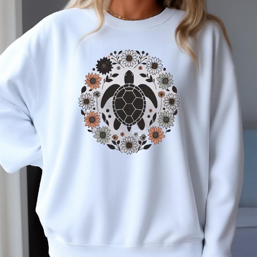 Turtle Sweater. Turtle Gift. Floral Sweater. Flower Crewneck. Turtle Crewneck. Turtle Lover Gift. Turtle Owner Gift. Sea Turtle Sweater Sweatshirt