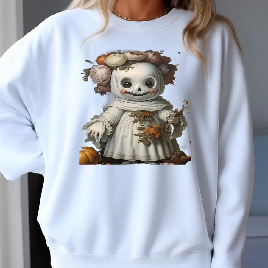 Spooky Floral Ghost Halloween Accent Pillow, 14x14, Moody Vintage Halloween Pillow Sweatshirt