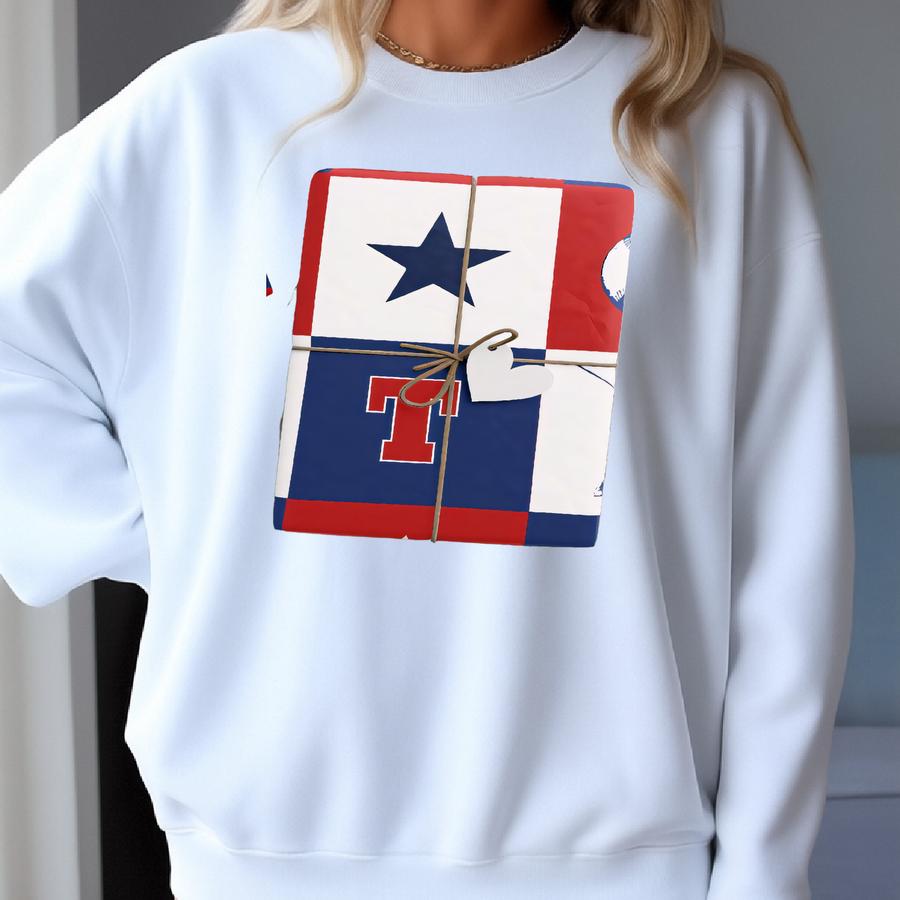 Texas Baseball Wrapping Paper, Blue And Red Sweatshirt