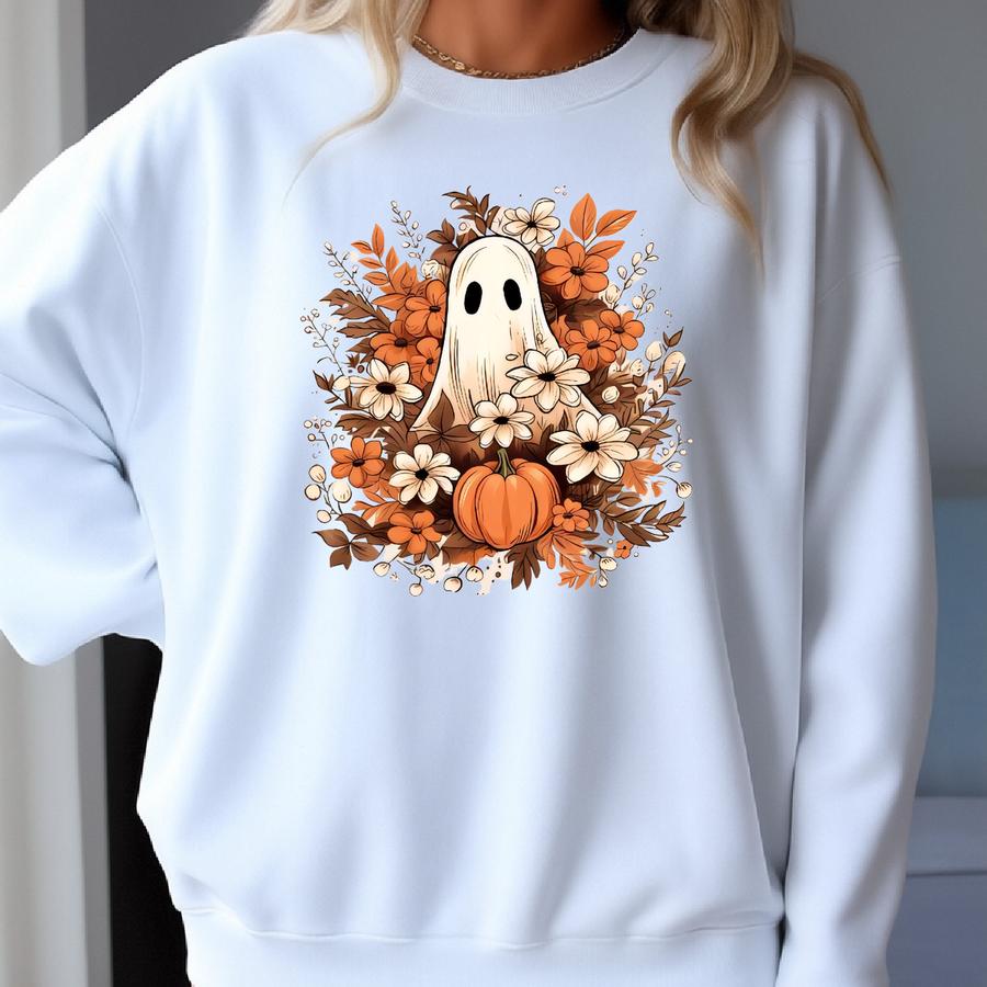 Vintage Floral Ghost Halloween Shirt: Retro Fall Tee Sweatshirt