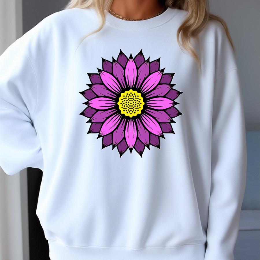 Purple Flower Shirt: Colorful Floral Design Tee Sweatshirt