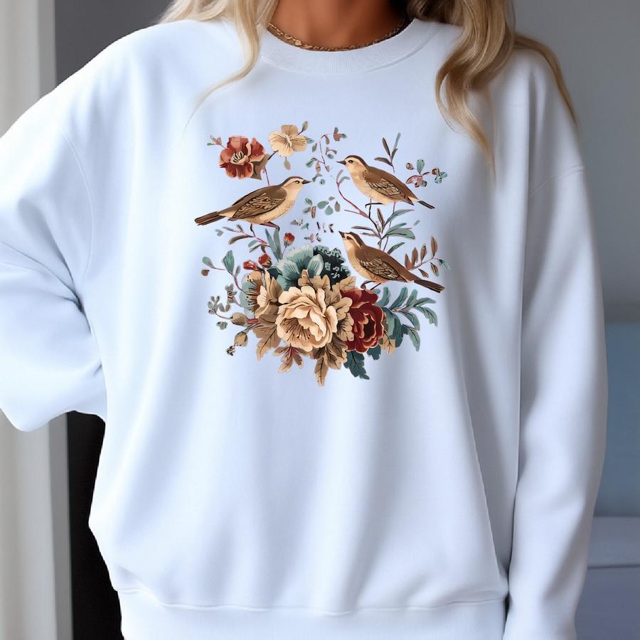 ® Boho Folk Art Bird Shirt, Bird And Flowers Shirt, Boho T-shirt, Flower Shirt, Cottagecore Shirt, Boho Spring T-shirt Sweatshirt