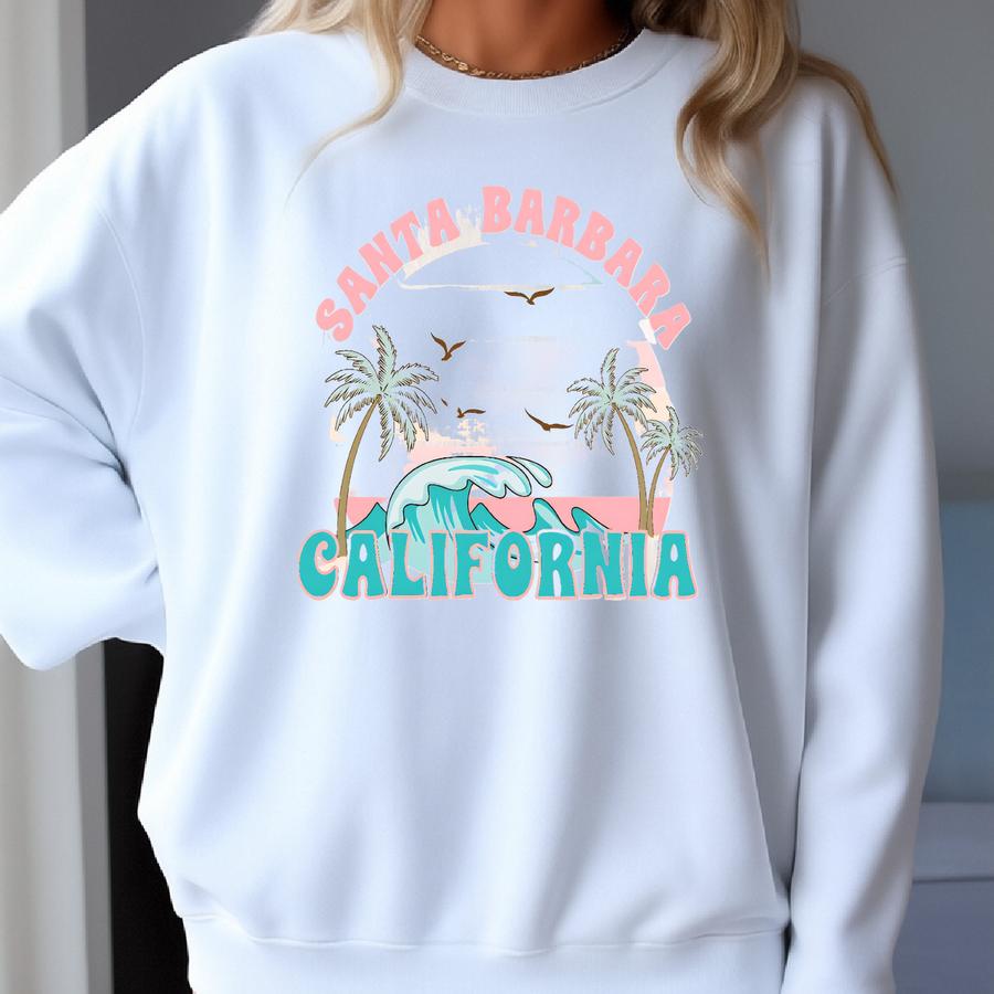 Santa Barbara California Beach T-shirt, Beach Tee, Retro Beach Design Short Sve Tshirt Sweatshirt