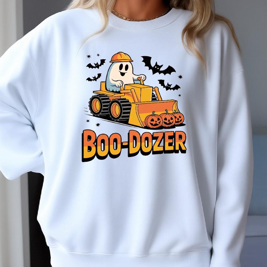 Boo - Dozer Halloween Sweatshirt, Boo-dozer Toddler Graphic Sweater, Cute Bulldozer Halloween Hoodie For Boys, Boy Halloween Sweater Sweatshirt