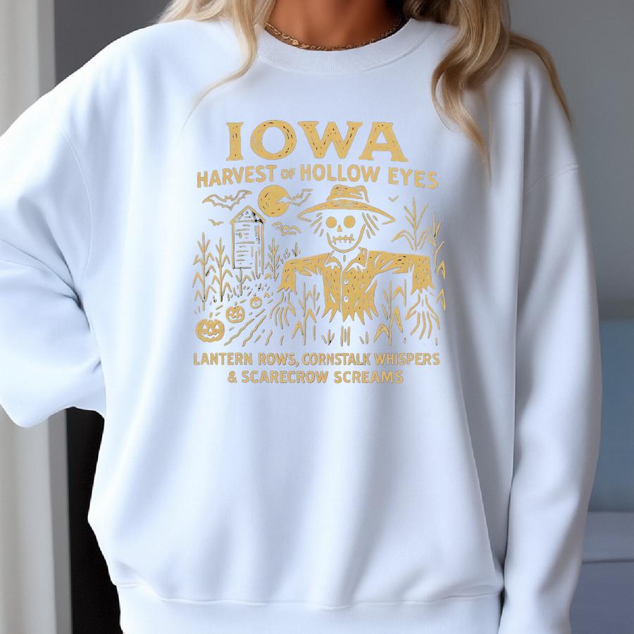 Iowa Halloween Sweatshirt: Harvest Of Hollow Eyes Scarecrow Design Sweatshirt