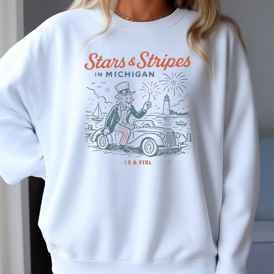 Stars Stripes Michigan Tee: Vintage Americana Graphic T-shirt Sweatshirt