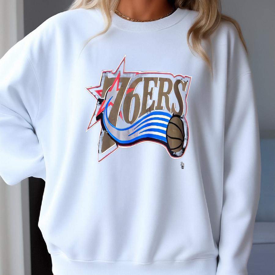 90s Philadelphia ‘76ers’ T-shirt Print Logo Black Color Men’s Xl Sweatshirt