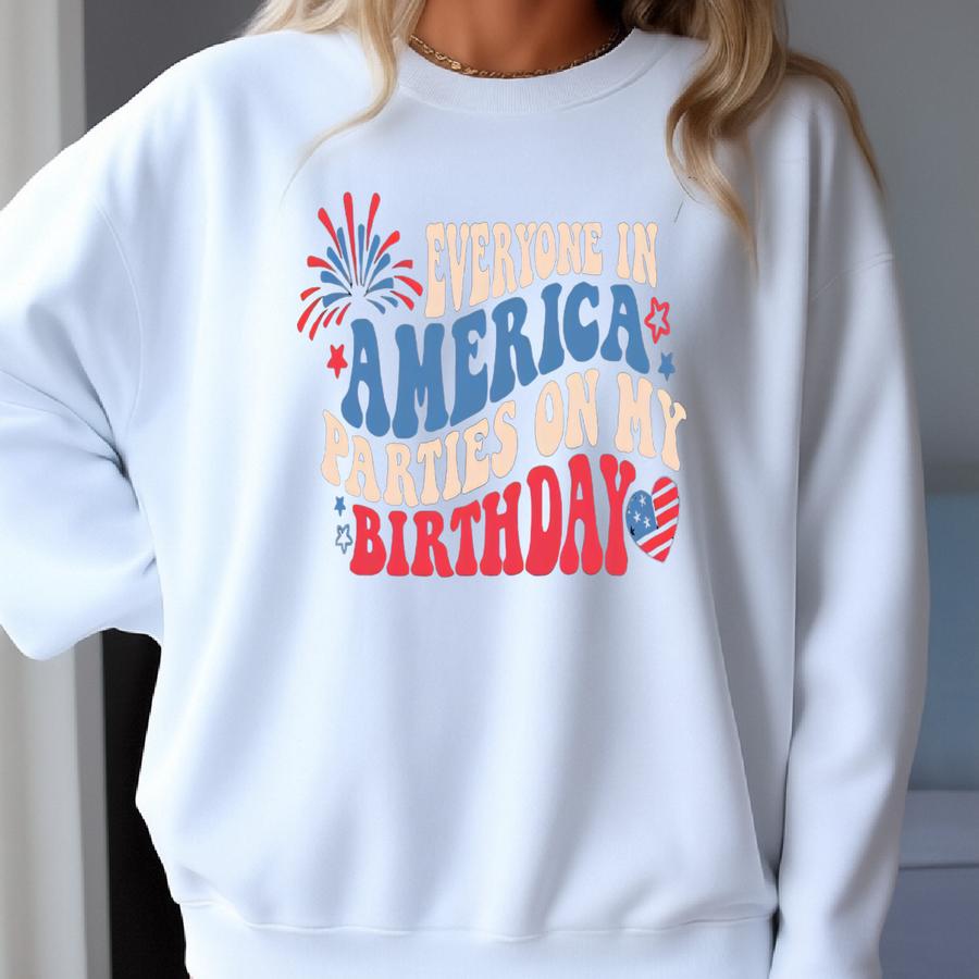 Everyone In America Parties On My Birthday Shirt, 4th Of July Birthday Shirt, Independence Day Shirt, Birthday Gift, Birthday Party Shirt Sweatshirt