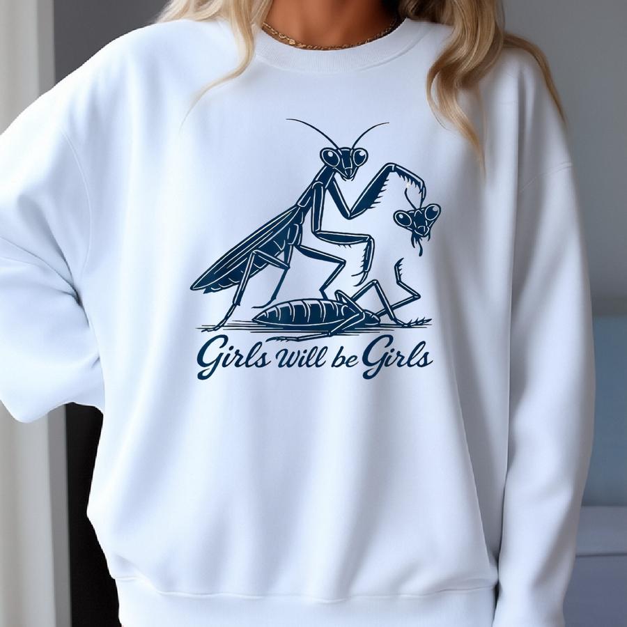 Girls Will Be Girls Sweatshirt, Praying Mantis Tee, Insect Lover, Funny Insect Shirt, Entomologist, Bug Lover, Insect T-shirt, Unique Shirt Sweatshirt